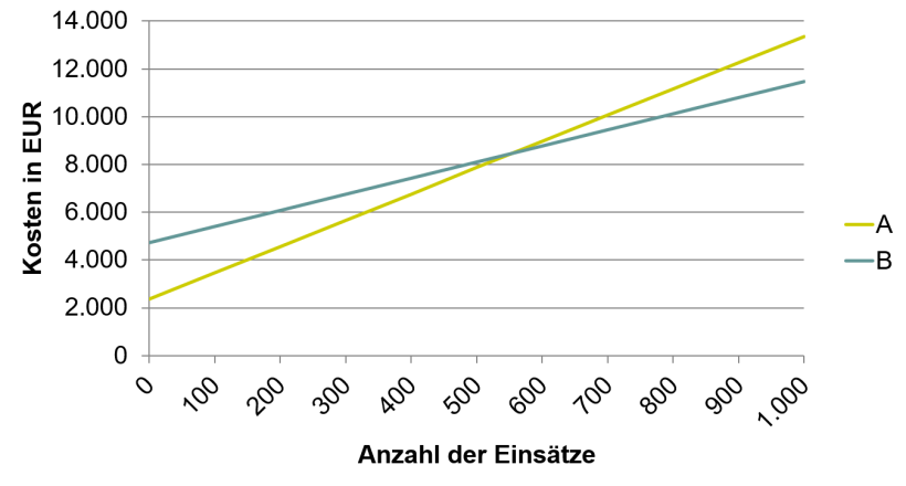 - rechnerische Ermittlung der Einsätze, bei denen die Kosten gleich sind.